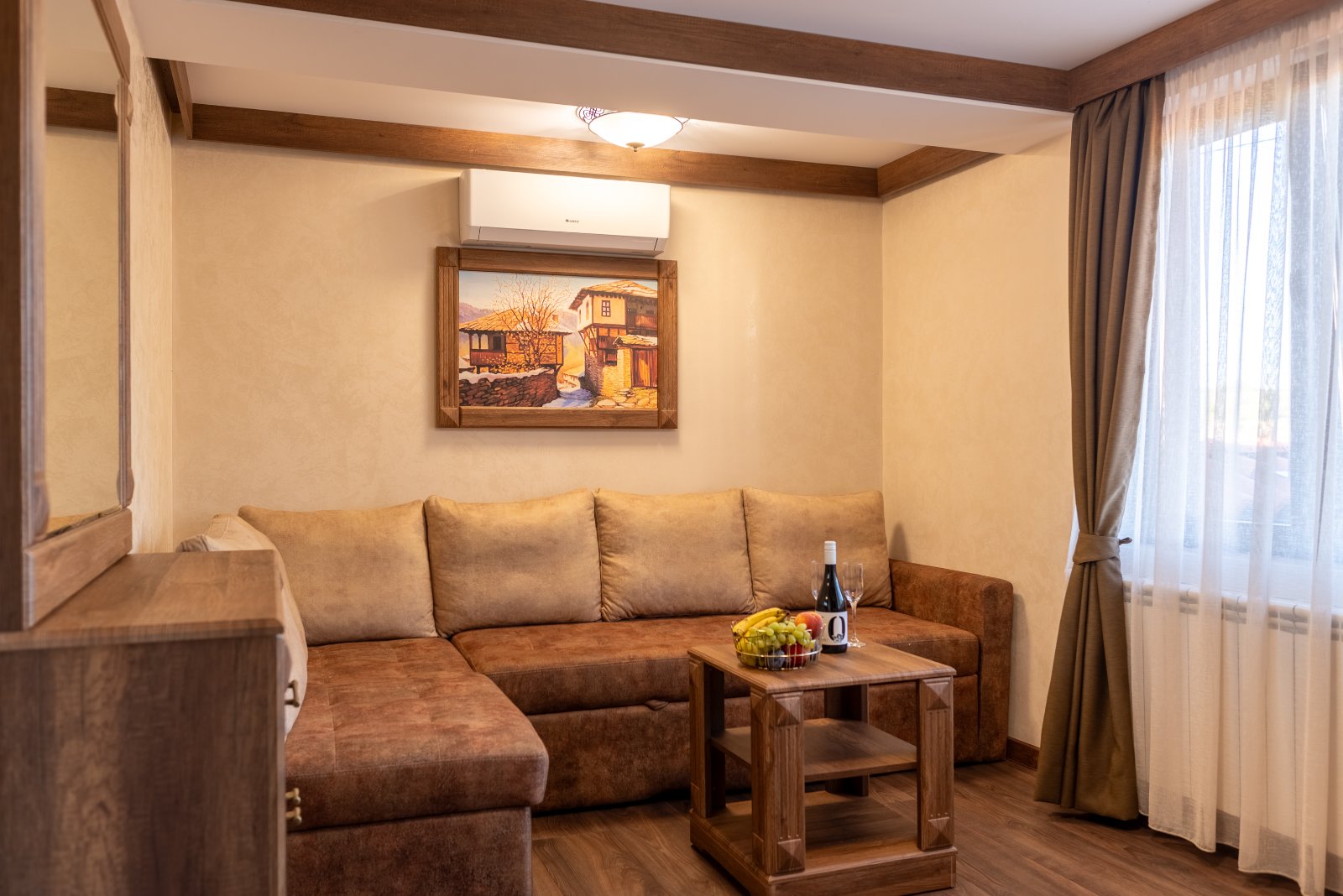 Джуниър суит е 45кв.м създаден за удобство на четиричленно семейство с две отделни помещения и санитарен възел. Разполага с два плазмени телевизора и климатици и мини бар. Обзаведен с удобни легла и високо качество мебели от дърво придаващи комфорт.